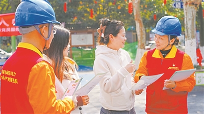 国网四川电力成都高新连心桥党员服务队队员在成都高新区蓓蕾社区开展安全用电宣传。罗舒琦??摄