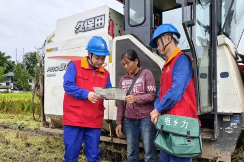近日,雅安市名山区万亩粮经现代农业园区内,金黄稻浪翻滚,收割机轰鸣声此起彼伏,一派繁忙的丰收景象。 “师傅,您作业时一定要多留意周边的电杆和拉线,收割机臂升起时务必与线路保持3米以上安全距离,避免因剐蹭引发设备故障或安全事故。”待收割机停稳,国家电网四川电力(雅安名山)连心桥共产党员服务队队员,一边结合实际场景与收割机操作员沟通,一边发放《秋收用电安全手册》。 “今天上午排查时,我们发现2处电杆防撞标识磨损、3处配电箱门锁松动,都当场补装、加固好了,就是要让农户安心收割。车岭供电所台区经理袁正忠说,名山区万亩粮经现代农业园区里部分电力设施紧邻农田,秋收时收割机、运输车频繁移动,一旦剐蹭线路不仅会造成停电,还可能引发安全风险。 为全力保障秋收用电安全,国网雅安市名山区供电公司提前研判园区用电需求,制定专项保电方案,组建多支流动队伍分片负责。巡查队伍沿园区田埂、道路展开“拉网式”隐患排查。他们携带红外测温仪、钳形电流表等工具,对10千伏线路杆塔基础、配电变压器接线端子、田间配电箱内部线路逐一检测,重点查看线路绝缘层是否老化开裂、设备接地是否牢固、漏电保护装置是否灵敏可靠。遇到正在田边休息的农户,工作人员还会主动上前,结合近期可能出现的阴雨天气,讲解农机作业后切断设备电源、避免湿手触碰开关等安全要点。 同时,公司还通过村社微信群推送农机作业安全用电指南,在电杆、拉线等关键位置加装反光防撞标识20余处,确保安全提示全覆盖。后续,该公司还将持续加强园区线路设备特巡,24小时待命响应故障报修,以可靠电力守护农户“粮袋子”,助力秋粮颗粒归仓。 “往年秋收时总担心农机碰到电线,今年供电师傅天天来巡查,还反复跟我们讲注意事项,现在干活特别踏实。”种植户张建国看着自家即将收割完毕的稻田,语气里满是安心,“从割稻到脱粒都离不开电,有他们守着线路,我们只管放心收粮食!”