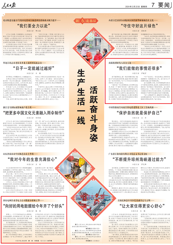南瑞集团研发人员金玉龙—— “我们能做的事情还很多” 春节假期刚过,新一轮的寒潮来袭。“越是天气状况波动的时候,越是考验我们虚拟电厂技术的时候。”位于江苏南京的南瑞集团研发人员金玉龙说。 “虚拟电厂可以把零散电力负荷聚合起来,形成一个‘虚拟’的发电厂,提升电力系统的灵活调节能力。”金玉龙向记者解释道,“比如这几天强降温,有的地方居民用电负荷会有所增加,电网企业便可以通过虚拟电厂技术使部分商场的空调温度从26摄氏度调低到25摄氏度。这样,既不影响商场的正常经营,又保障了居民的用电需求。” “叮!”说话间,一条信息弹出,同事告知他最新的一批数据已经上传。金玉龙马上开始操作电脑,进行数据处理。 金玉龙解释,风电、光伏等新能源发电受天气影响比较明显,波动性、间歇性的特性对虚拟电厂技术提出了更高的要求。金玉龙和同事设计出一个集合了深度学习、神经网络、大数据分析等技术的混合模型,可以更好地将极端天气事件和电量电价进行匹配预测。 “如今,新能源汽车、储能项目发展迅速,这些都是虚拟电厂技术可应用的领域。我们能做的事情还很多。”金玉龙说。 国家电网甘肃省电力公司数据分析师王华—— “向好的用电数据给今年开了个好头” 屏幕上,一行行代码快速闪过;屏幕前,王华熟练操作,利用数据分析工具,发掘一串串数字背后的价值。她双眼紧盯屏幕,确保数据清洗和异常值处理过程没有差错。 春节假期后第一天,在国家电网甘肃省电力公司负责数据分析工作的王华就投入到电力数据的整理和分析工作中。“我们要检查数据中台的任务调度以及数据链路等情况,通过这些数据总结出经济运行和社会发展的一些规律和特点。”王华说。 除了核对数据运行情况,王华和同事们还要输出一份“电力年味报告”。通过开展节日用电负荷、台区运行、行业用电等数据的抽取、清洗与分析工作,能够从电力数据角度透视春节假期用电负荷分布,回看春节期间返乡团圆时刻,见证陇原龙年开门红。 经过几天时间的忙碌,王华和同事们完成了数据处理和分析工作。数据分析发现,甘肃龙年春节期间日均用电量较上年增长1.72%。“向好的用电数据给今年开了个好头,相信龙年的红火才刚刚开始,我跟同事们还将持续关注节后各行各业复工复产情况,让电力数据在电网数字化转型中发挥更大作用。”王华说。 (未经允许 禁止转载)